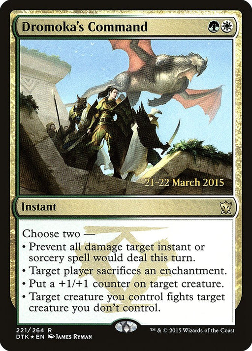 Dragons of Tarkir PromosRupture de stockChoose two — • Your opponents can't gain life this turn. • Atarka's Command deals 3 damage to each opponent. • You may put a land card from your...