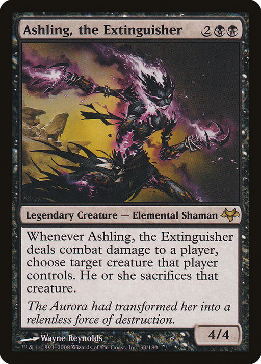 EventideStock basWhenever Ashling, the Extinguisher deals combat damage to a player, choose target creature that player controls. The player sacrifices that creature.