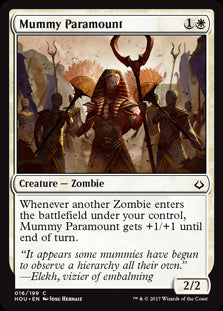 Hour of DevastationEn stockWhenever another Zombie enters the battlefield under your control, Mummy Paramount gets +1/+1 until end of turn.