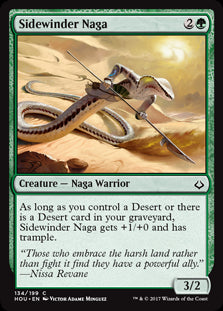 Hour of DevastationEn stockAs long as you control a Desert or there is a Desert card in your graveyard, Sidewinder Naga gets +1/+0 and has trample.