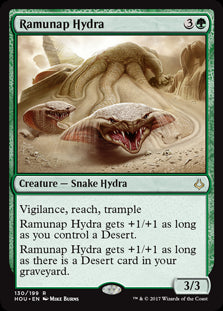 Hour of DevastationEn stockVigilance, reach, trample Ramunap Hydra gets +1/+1 as long as you control a Desert. Ramunap Hydra gets +1/+1 as long as there is a Desert card in y...