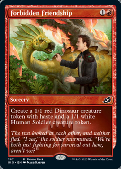 Ikoria: Lair of BehemothsStock basCreate a 1/1 red Dinosaur creature token with haste and a 1/1 white Human Soldier creature token.