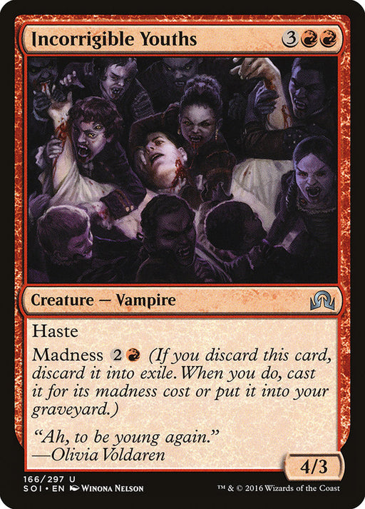 Shadows over InnistradEn stockAttacking creatures you control have first strike. Whenever a Vampire you control deals combat damage to a player, put a +1/+1 counter on it. Madne...