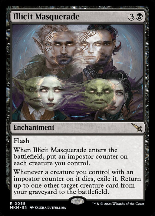 Murders at Karlov ManorStock basFlash When Illicit Masquerade enters the battlefield, put an impostor counter on each creature you control. Whenever a creature you control with an...