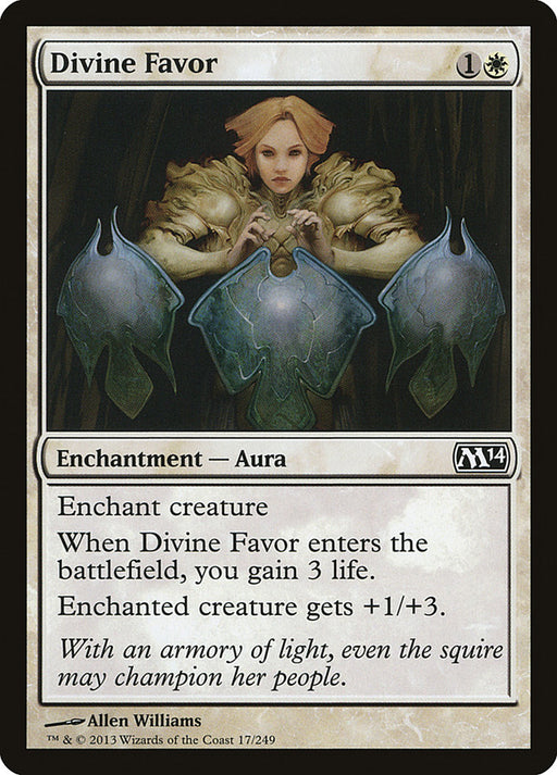 Magic 2014En stockEnchant creature When Divine Favor enters the battlefield, you gain 3 life. Enchanted creature gets +1/+3.