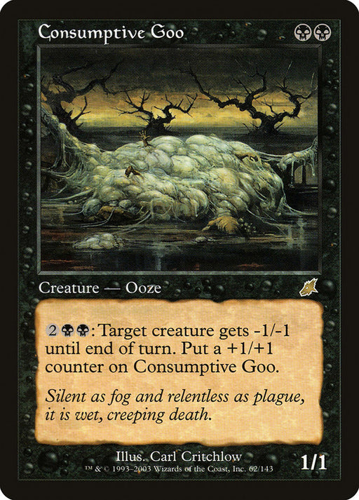 ScourgeStock bas{2}{B}{B}: Target creature gets -1/-1 until end of turn. Put a +1/+1 counter on Consumptive Goo.