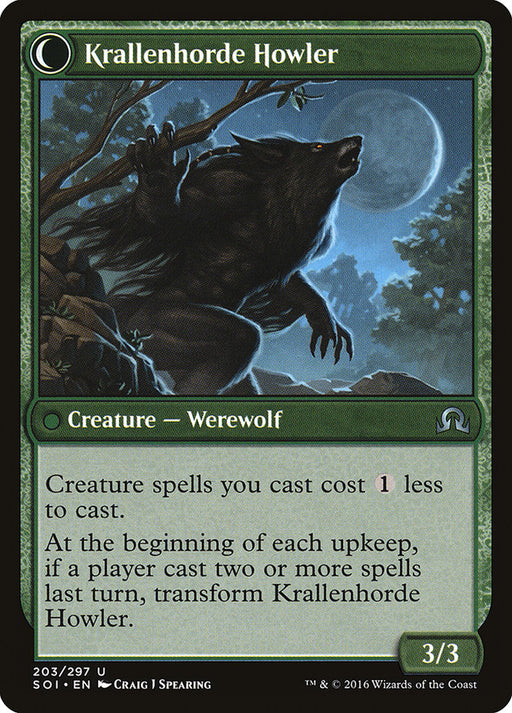 Shadows over InnistradStock basCreature spells you cast cost {1} less to cast. At the beginning of each upkeep, if a player cast two or more spells last turn, transform Krallenho...