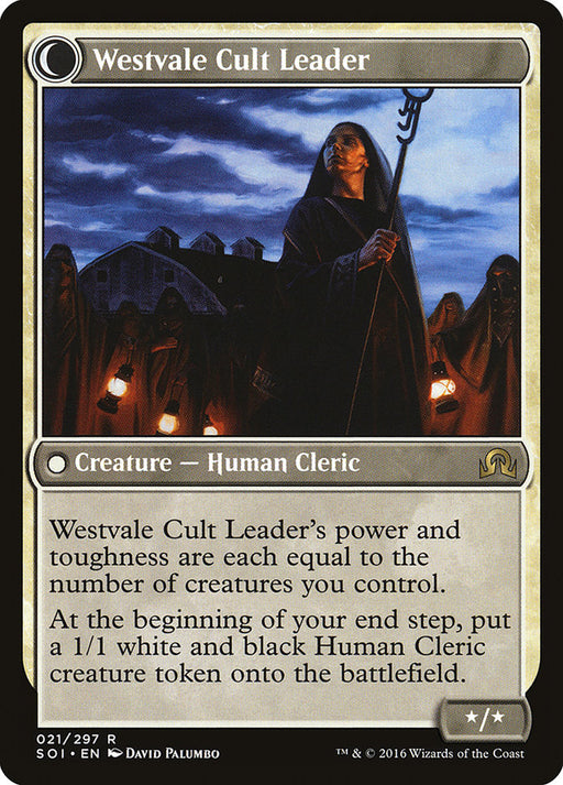 Shadows over InnistradStock basWestvale Cult Leader's power and toughness are each equal to the number of creatures you control. At the beginning of your end step, create a 1/1 w...