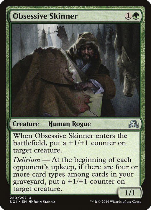 Shadows over InnistradEn stockWhen Obsessive Skinner enters the battlefield, put a +1/+1 counter on target creature. Delirium — At the beginning of each opponent's upkeep, if th...