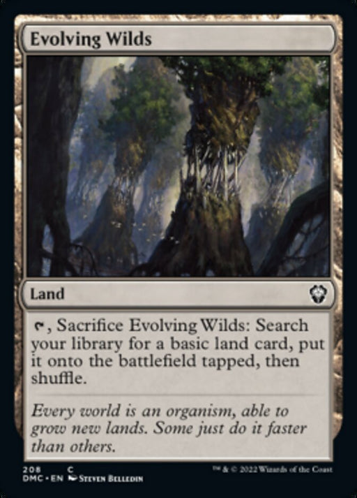 Dominaria United CommanderStock bas{T}, Sacrifice Evolving Wilds: Search your library for a basic land card, put it onto the battlefield tapped, then shuffle.