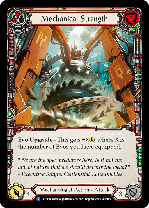 Bright LightsRupture de stockIf you have 1 or more Evos equipped, this gets "When this hits a hero, they discard a card," 2 or more, this costs {r}{r}{r} less to play, 3 or mor...
