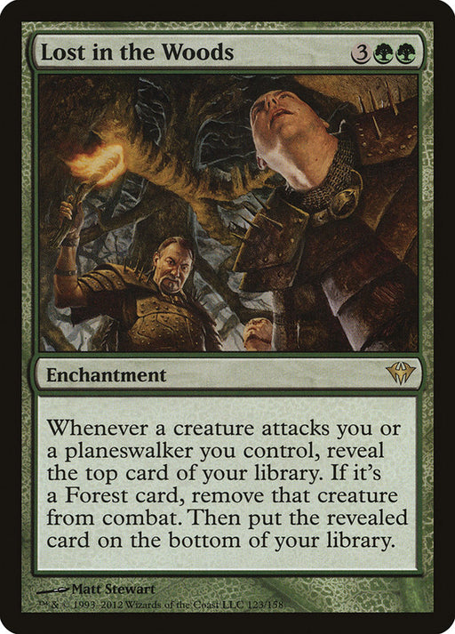 Dark AscensionRupture de stockWhenever a creature attacks you or a planeswalker you control, reveal the top card of your library. If it's a Forest card, remove that creature fro...