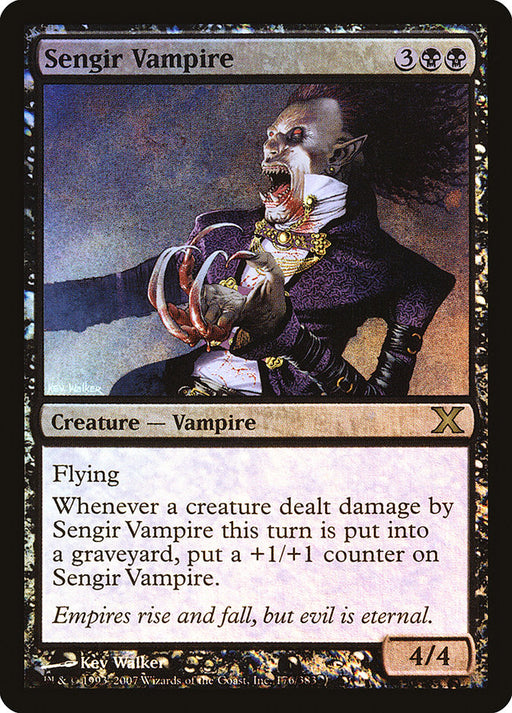 Tenth EditionRupture de stockFlying (This creature can't be blocked except by creatures with flying or reach.) Whenever a creature dealt damage by Sengir Vampire this turn die...