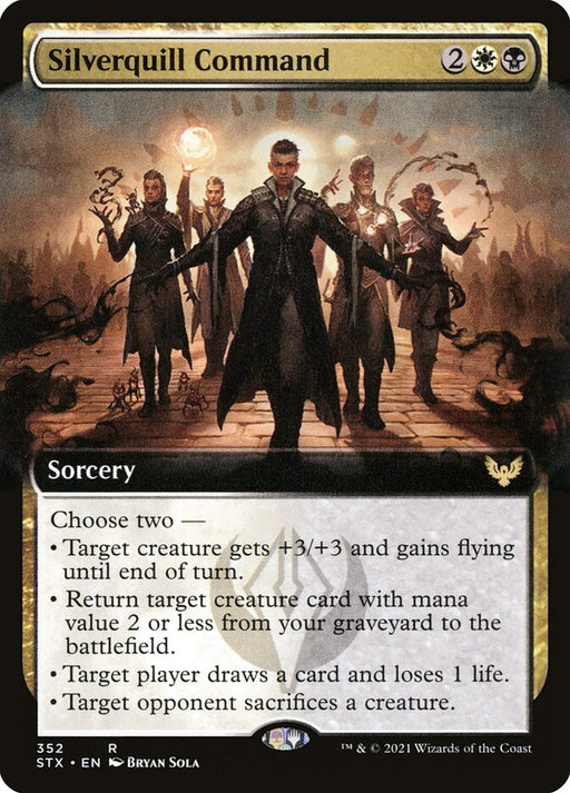 Strixhaven: School of MagesRupture de stockChoose two — • Target creature gets +3/+3 and gains flying until end of turn. • Return target creature card with mana value 2 or less from your gra...