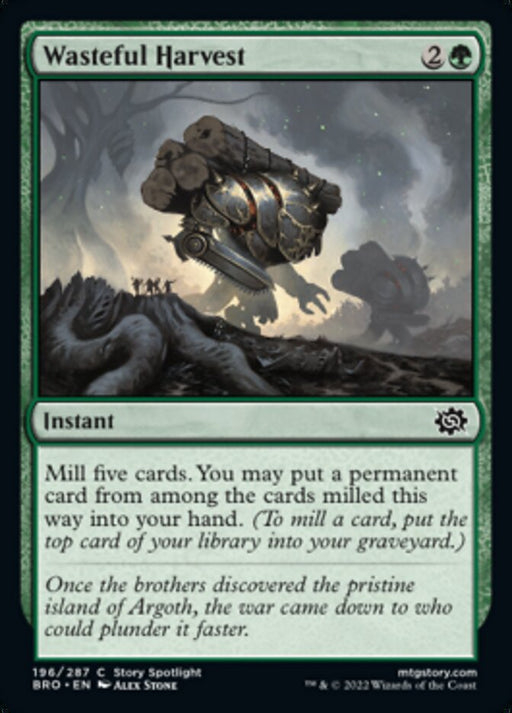 The Brothers' WarEn stockMill five cards. You may put a permanent card from among the cards milled this way into your hand. (To mill a card, put the top card of your librar...