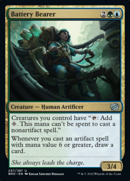 The Brothers' WarEn stockCreatures you control have "{T}: Add {C}. This mana can't be spent to cast a nonartifact spell." Whenever you cast an artifact spell with mana valu...