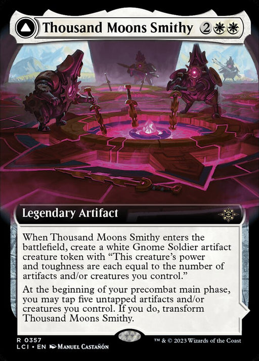 The Lost Caverns of IxalanRupture de stockWhen Thousand Moons Smithy enters the battlefield, create a white Gnome Soldier artifact creature token with "This creature's power and toughness a...
