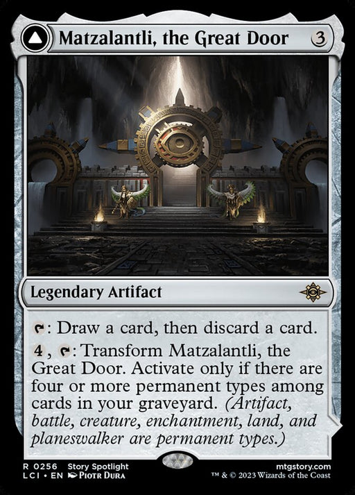 The Lost Caverns of IxalanRupture de stock{T}: Draw a card, then discard a card. {4}, {T}: Transform Matzalantli, the Great Door. Activate only if there are four or more permanent types amo...
