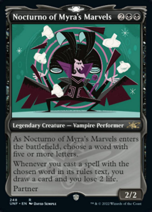 UnfinityRupture de stockAs Nocturno of Myra's Marvels enters the battlefield, choose a word with five or more letters. Whenever you cast a spell with the chosen word in i...