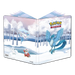 9-Pocket Portfolios for Pokémon feature a vibrant, full-art cover of Articuno, Alolan Vulpix, Vanilluxe, Delibird, and Snom. Each portfolio stores and protects up to 90 standard size cards single-loaded and 180 cards double-loaded in archival-safe polypropylene pages. Made in California, U.S.A.