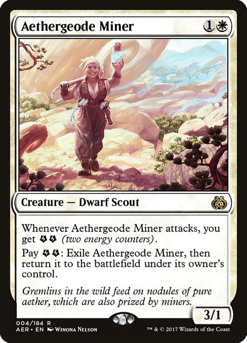 Whenever Aethergeode Miner attacks, you get {E}{E} (two energy counters).