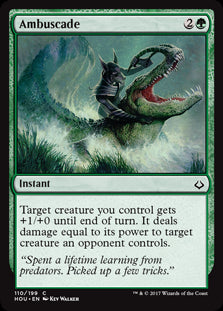 Target creature you control gets +1/+0 until end of turn. It deals damage equal to its power to target creature an opponent controls.