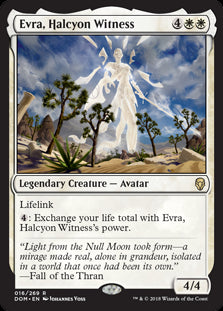 {4}: Exchange your life total with Evra, Halcyon Witness's power.