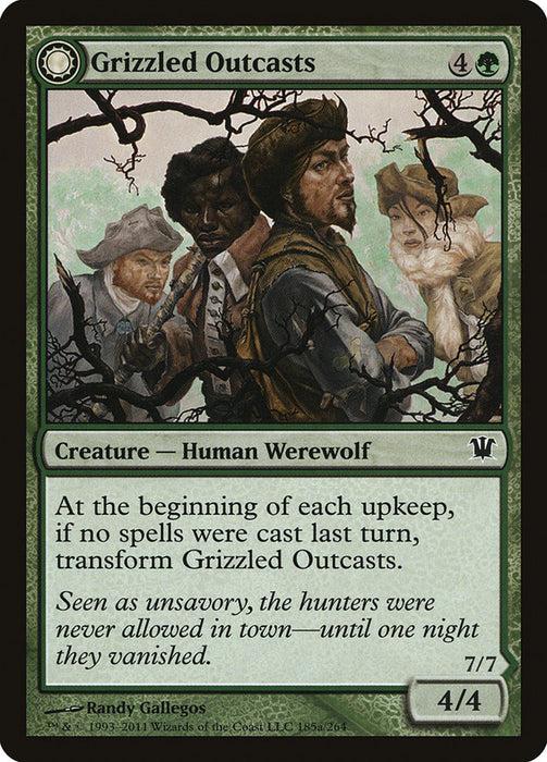 At the beginning of each upkeep, if no spells were cast last turn, transform Grizzled Outcasts.