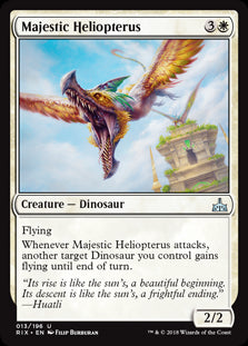Whenever Majestic Heliopterus attacks, another target Dinosaur you control gains flying until end of turn.