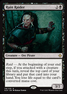 Raid — At the beginning of your end step, if you attacked with a creature this turn, reveal the top card of your library and put that card into your hand. You lose life equal to the card's converted mana cost.