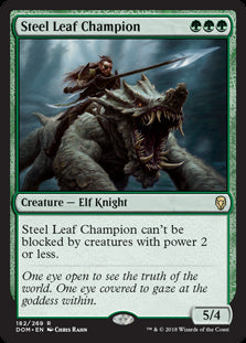 Steel Leaf Champion can't be blocked by creatures with power 2 or less.