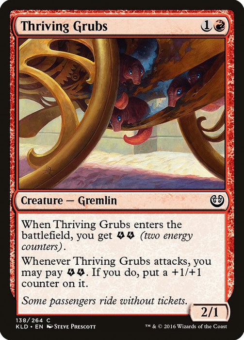 When Thriving Grubs enters the battlefield, you get {E}{E} (two energy counters).
