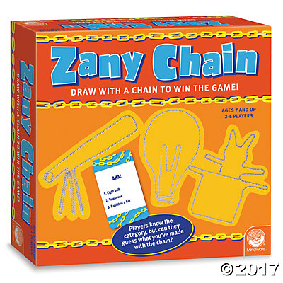 Zany Chain challenges you to create shapes w/only a chain for others to guess. It's tough!!